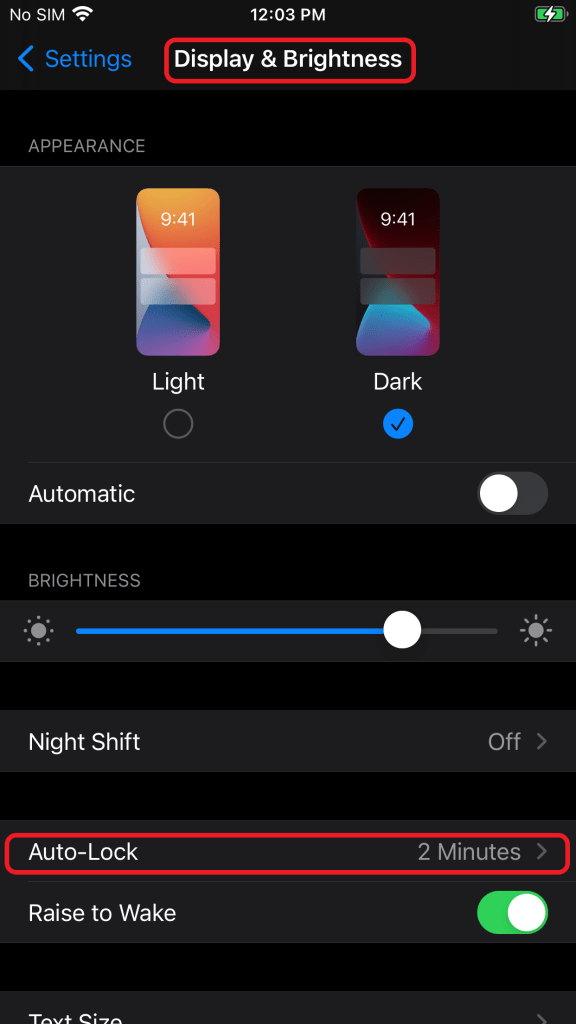 In the Display & Brightness setting there is a setting titled Auto-Lock as seen in Figure 2.