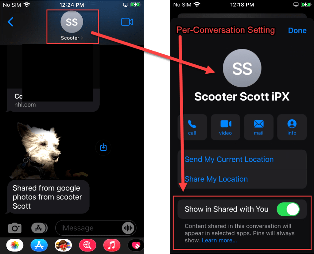 NOTE: During testing, I couldn’t determine how Apple decided if an Apple ID\phone number was a “friend,” nor did Shared with You links appear for every attachment from my “family” members