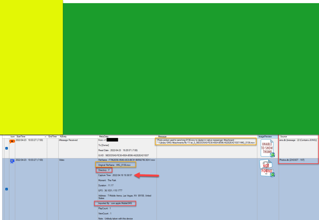 As discussed earlier, we can see in figure #53, the Saved Asset Type indicates a value of 12. This indicates the asset has been displayed on the device without the user saving this asset to the Local Photo Library but having a value of 12 also means that the asset has automatically saved to the Local Photo Library by Apples Shared with You asset analysis.