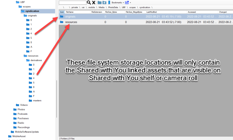 These Shared with You assets are being stored within the following file system locations and are only available via Full File System access: