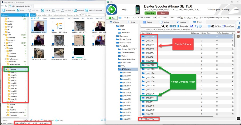 I recently noticed a few questions being posted on the listservs and DFIR Discord about examiners locating assets in file system (fs) locations like /private/var/mobile/Media/PhotoData/Metadata/DCIM/100APPLE/* and then not being able to find the corresponding original full-sized asset in the /private/var/mobile/Media/DCIM/100APPLE/* fs location. In one instance, the examiner believed the original full-sized asset was deleted but left behind the */Metadata/DCIM/100APPLE/ asset and the original assets entry in Photos.sqlite.