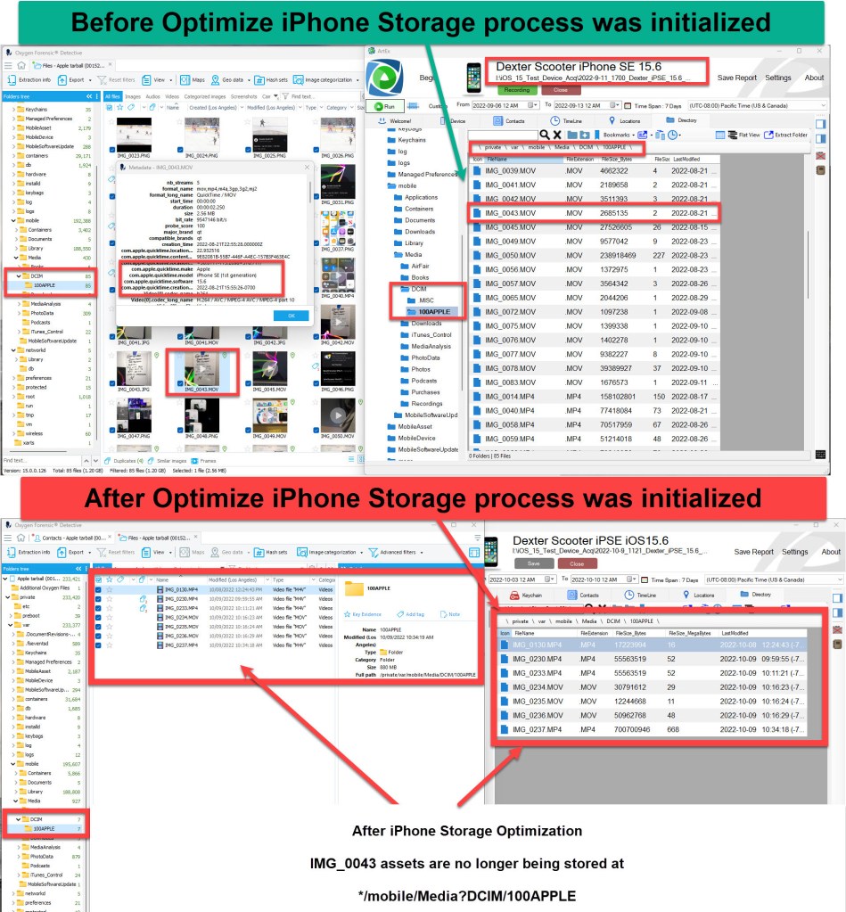 When I started researching the Optimize iPhone Storage setting and realized there was a connection to the Photos.sqlite ZINTERNALRESOURCE table this research project turned into a long one. I had no idea that our devices were behaving in this manner, nor did I realize that it would be so easy for someone to remove/hide data for hundreds of media assets within three seconds.