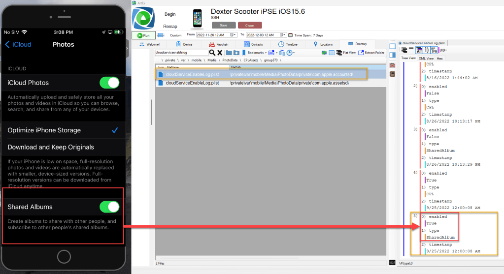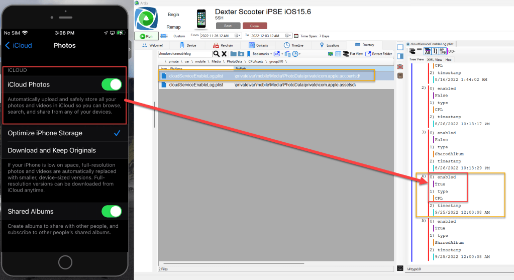 I believe this should cause alarms for any forensic examiner. This is a very quick way for a user to hide hundreds of illegal media files from examiners and investigators. We should all be checking the cloudServiceEnableLog.plist to analyze the iCloud Photo Library log to determine if iCloud Photos is being used.