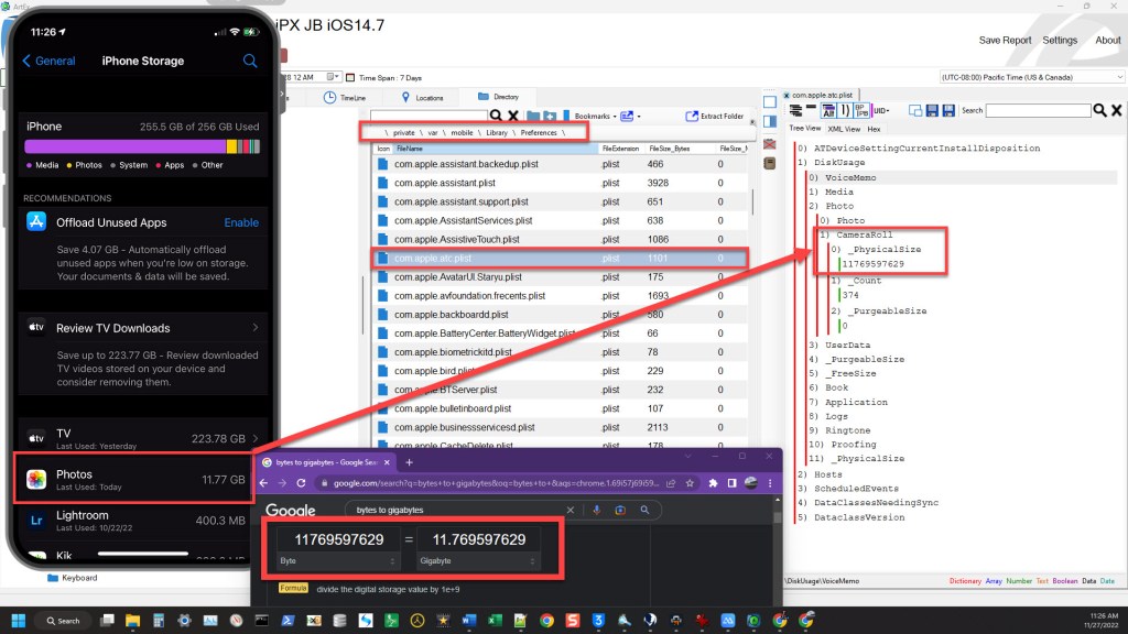 - _PhysicalSize – This matched the data being displayed within the iPhone Storage setting UI