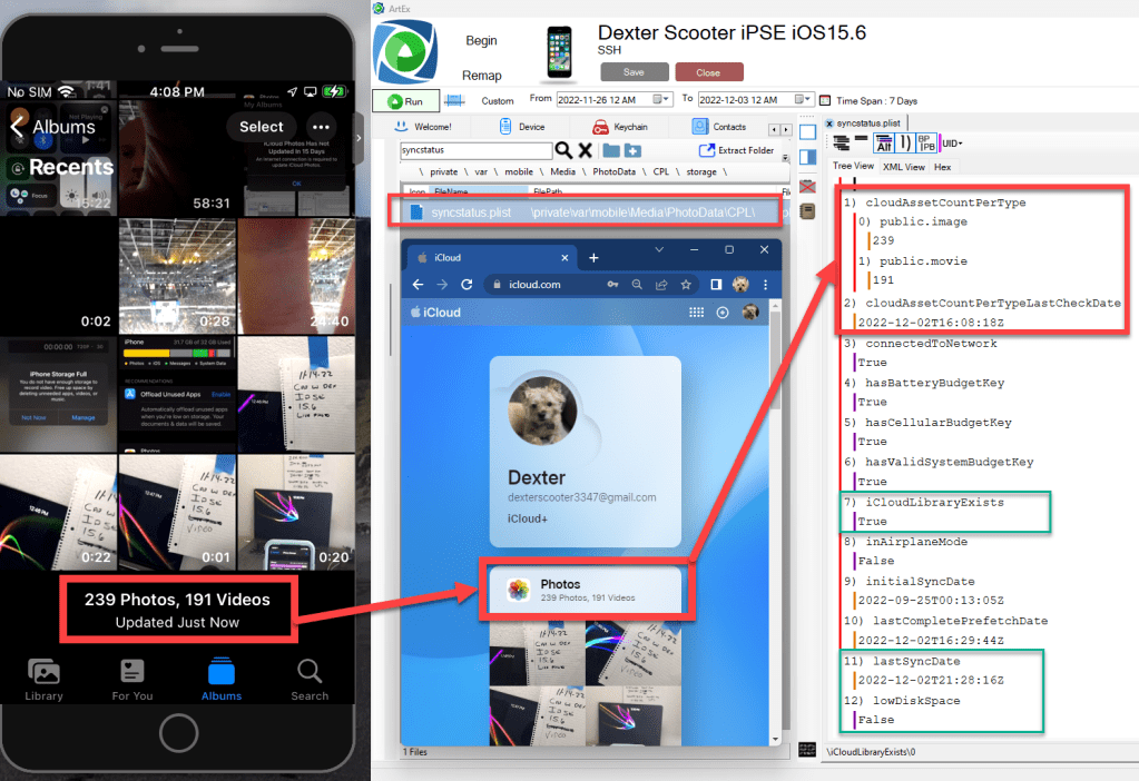 It’s clear to me, based on the device settings and the asset counts, this device contains assets that have been optimized and does not contain every original full-sized asset. This is an example of something you can do to determine if investigators should start working towards getting legal authority for iCloud Photos sync data.