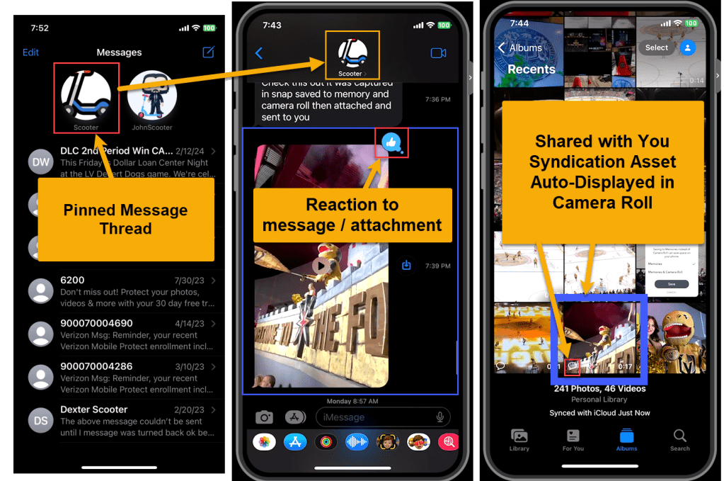 As the result of the updated testing and research, I learned the examiner who reached out was 100% correct! I missed a very important artifact and missed out on an easy method of linking Shared with You assets to a conversation (phone number or email) to which the asset originated.